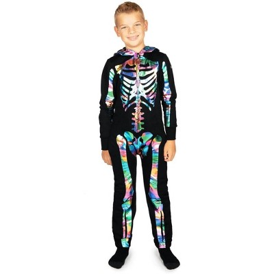 Tipsy Elves Kids Halloween Skeleton Costume - Comfy Easy Youth Jumpsuit - Front and Back Print with Zip Up Mask
