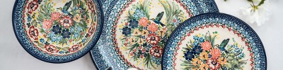 Blue Rose Pottery specializes in the sales of Polish Pottery. Our business started in 2004 and has grown to one of the largest retailers of Polish Pottery in the US. Our warehouse and only storefront are located in Rock Hill, SC - all of our pottery is imported directly from our five partner factories in Poland. The Art of Polish Pottery, as we know it today, started as local folk art centuries ago in the German province of Silesia. The first known pieces of “Bunzlauer” stoneware dating back to the 16th century were crafted by hand and decorated with a folk art stamping technique using potatoes. Original designs were inspired by the peacock feather using the colors of cobalt blue, sage green and ferrous red. These designs and colors are still the inspiration for modern day patterns. Today, skilled Polish artists still individually handcraft and hand decorate each piece using small sponges to stamp each pattern and color. After the process of mixing ingredients, molding the pottery, applying the decorations and glaze, the pottery is twice fired. This process makes the pottery extremely durable — it will not crack or chip easily — and it is perfect for use in the microwave, dishwasher, oven and freezer. We are featuring pottery on this site from five of the largest factories — Zaklady, Vena, WR Unikat , Manufaktura and Ceramika. They use virtually the same raw materials and time-honored techniques to craft the pottery, but each offers unique patterns and shapes to satisfy individual tastes. While traditional patterns remain most popular, there are literally hundreds of patterns produced.